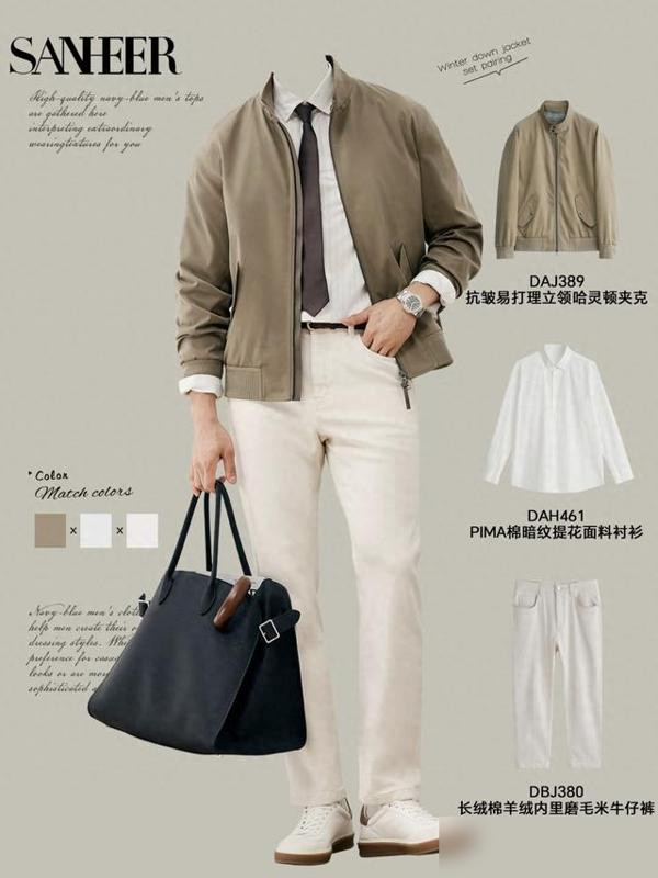 昨天坐地铁,旁边站着个穿商务通勤风的男生:深灰修身夹克配米白衬衫,西裤选了微锥版型,裤脚刚好盖过皮鞋鞋边,没有多余的褶皱——是不是很多打工人都怕穿商务装像“卖保险的”?其实秘诀就在“合身”两个字:夹克肩线对齐肩膀,衬衫领口露出1cm,西裤选有垂感的料子,瞬间从“职场新人”变成“专业但好说话的主管”。我同事小张之前踩过坑,买了件oversize夹克配阔腿西裤,结果显得腿短了三公分,后来换了合身款,现在客户见他都夸“小伙子精神”。